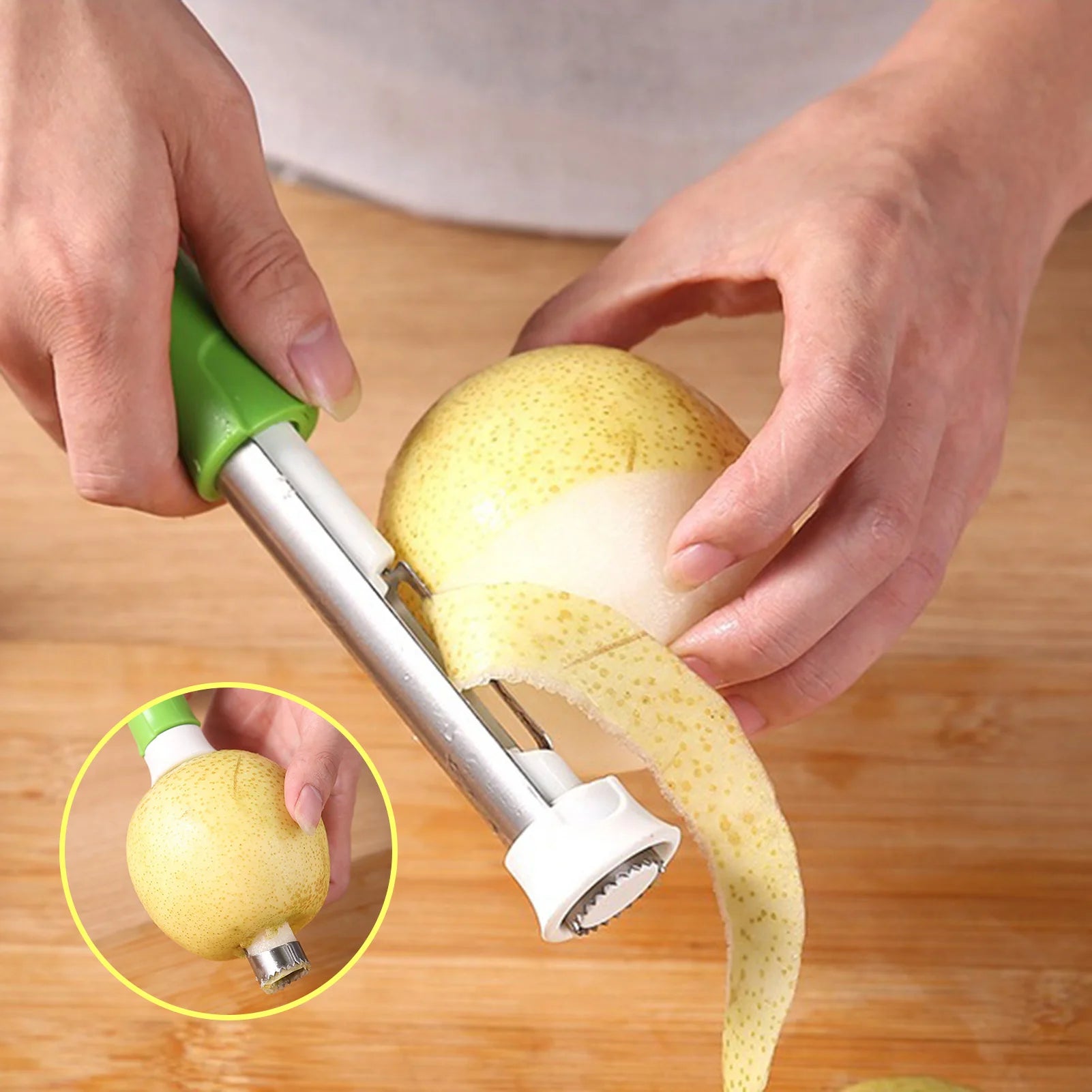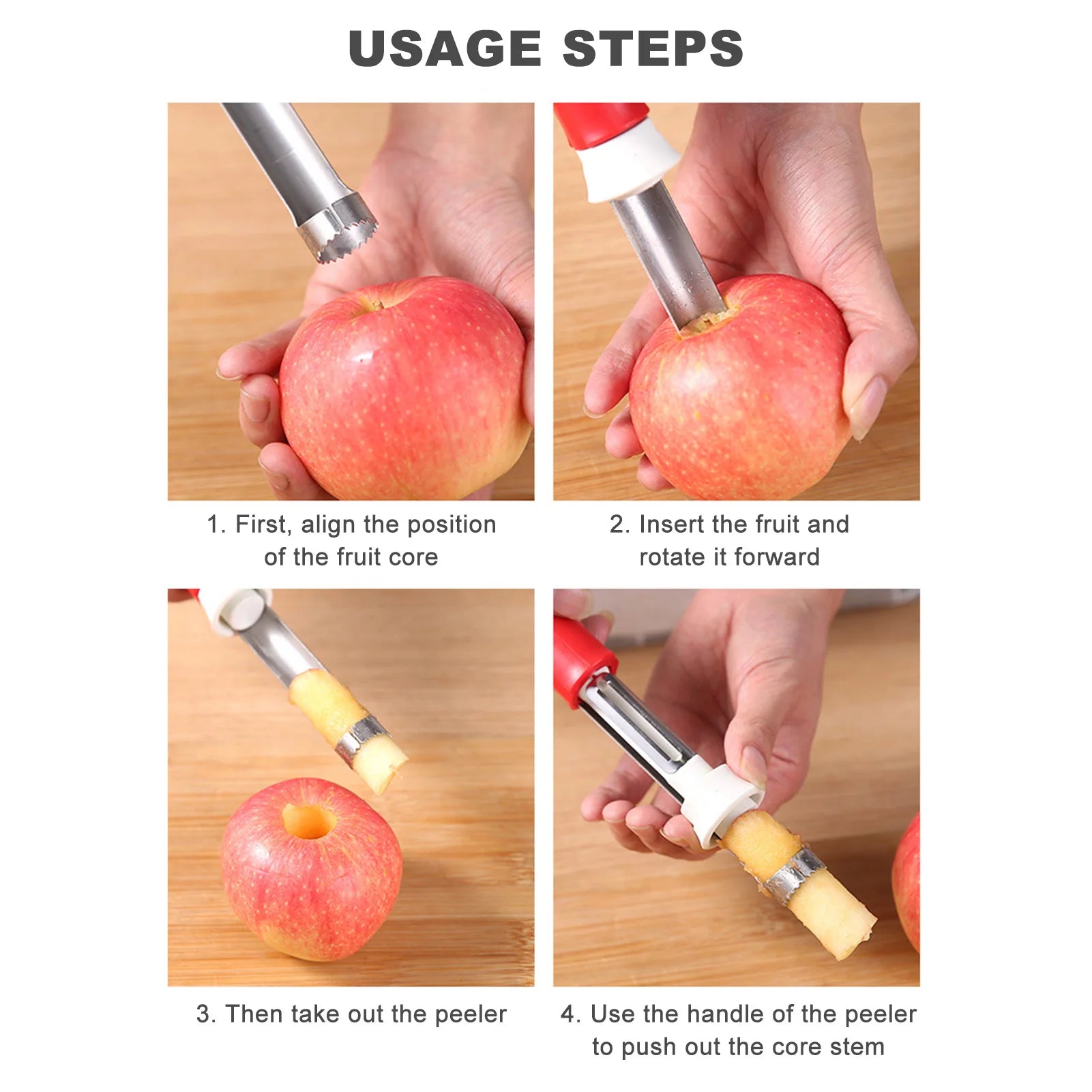 Say goodbye to the hassle of using multiple gadgets for fruit preparation. Our multifunctional tool combines the functionality of a corer and peeler in one sleek design, making it a versatile addition to any kitchen.