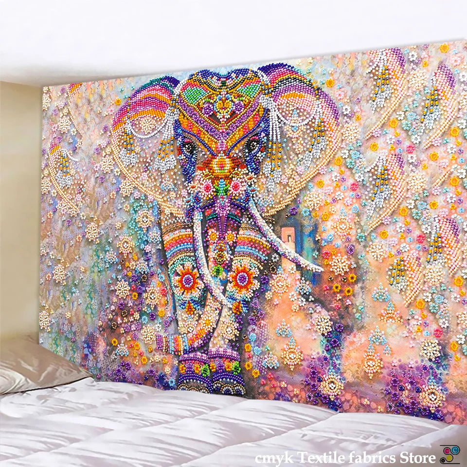 Bohemian Bliss- Colorful Pearl Elephant 3D Mosaic Tapestry