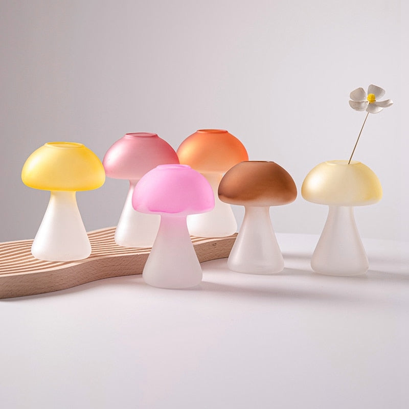 Create a beautiful display of plant cuttings or flowers with these pretty retro style mushroom vases, they come in different shapes and colors. The mushroom vases are made of fine glass and available in 8 colors.