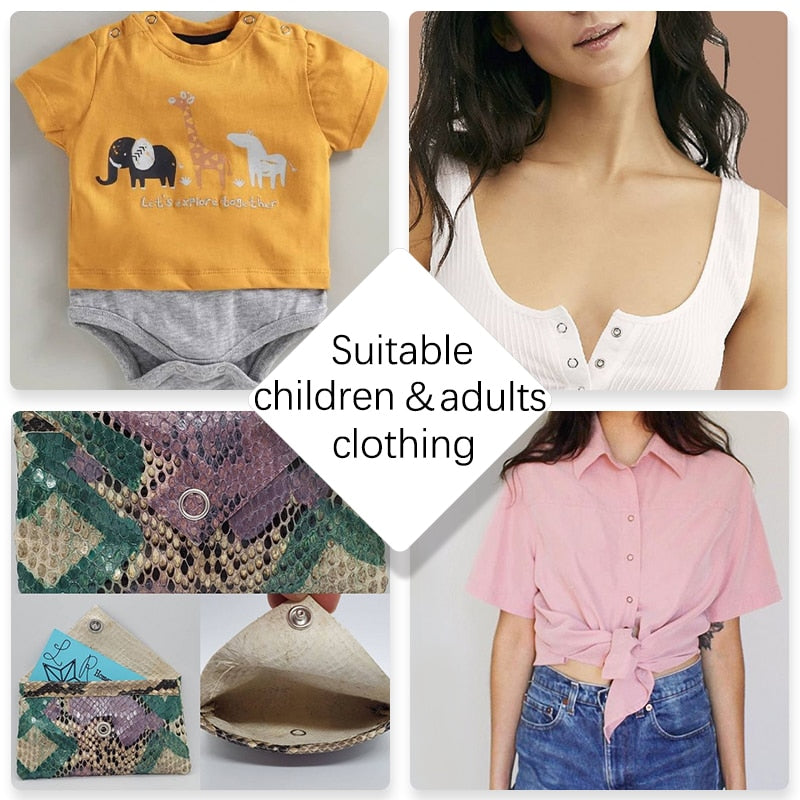 - WIDE APPLICATION: Snap Button Kits can be applied for DIY crafts, or making clothes such as shirts, jackets, backpacks, clothes, hats, and so on.