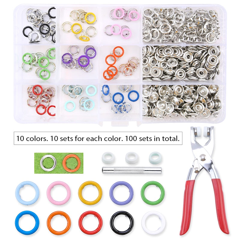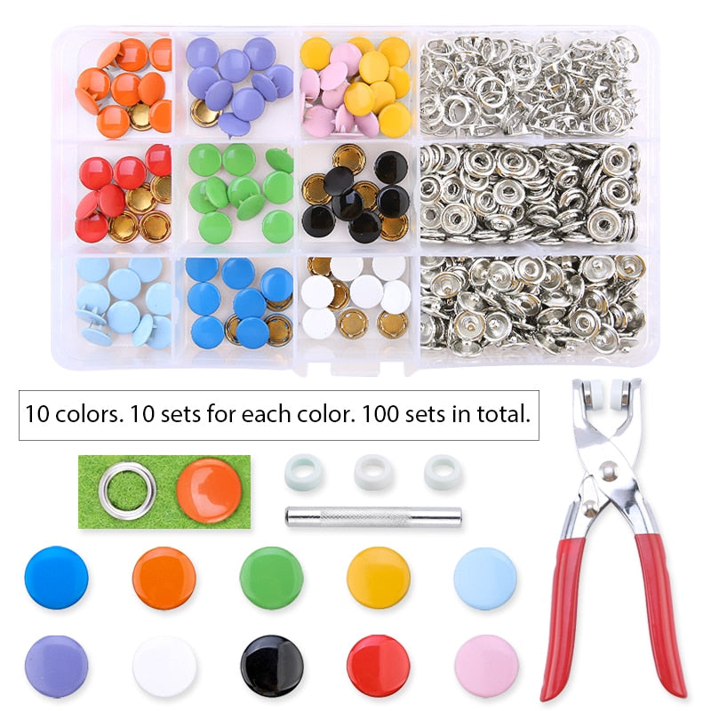 Metal Snap Fasteners Kit with Fastener Pliers Press