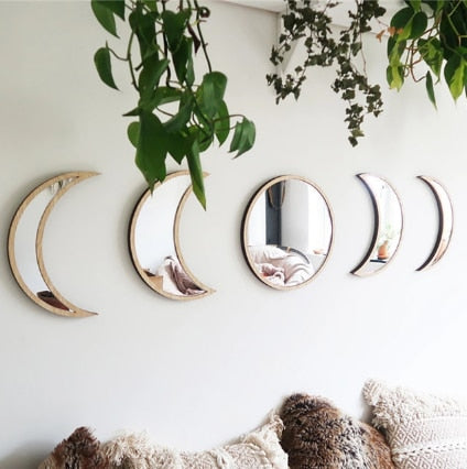You are looking at a complete set of Moonphase wooden mirrors for you home! These mirrors are a perfect addition to any moon lovers room and are a great spiritual home decor piece! They easily bounce the light around and will make your home feel more light and spacious nuosunny.