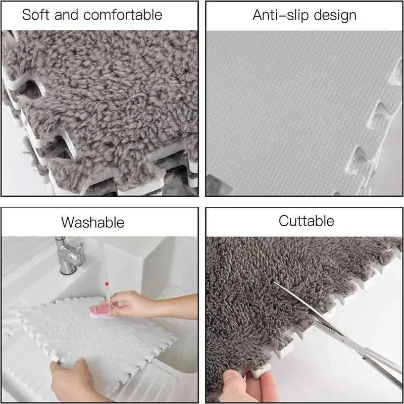 Wide range of applications: Our thick square interlocking fluffy tiles are suitable for use in winter to keep feet warm. They are also very suitable for living rooms, bedrooms, baby rooms and other places to provide you with comfort and your children are safe.